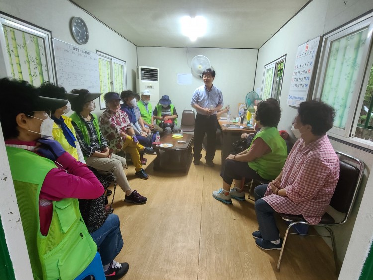 일자리사업에 참여하시는 어르신들의 혹서기 대비 건강예방 수칙에 따른 교육을