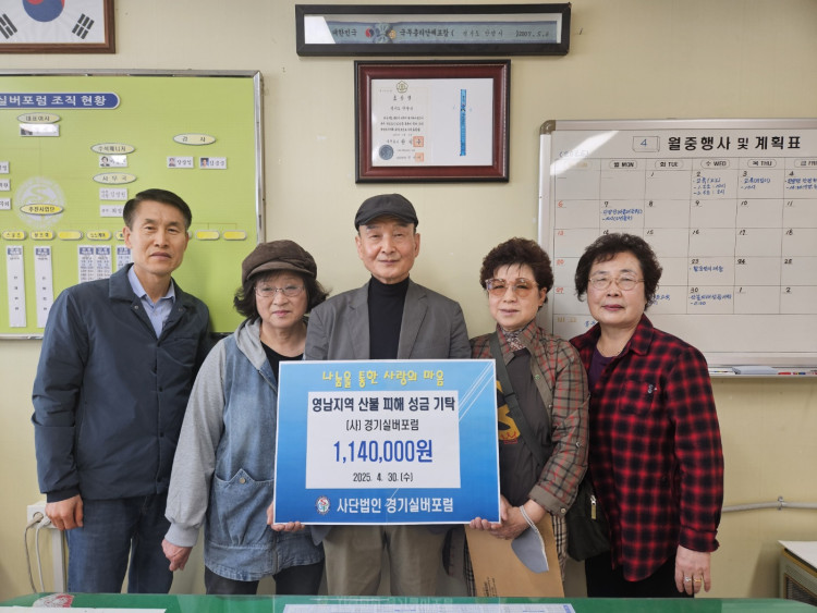 경기실버포럼 회원 36명이 십시일반 마음을 모아 산불로 피해를 입은 이재민의